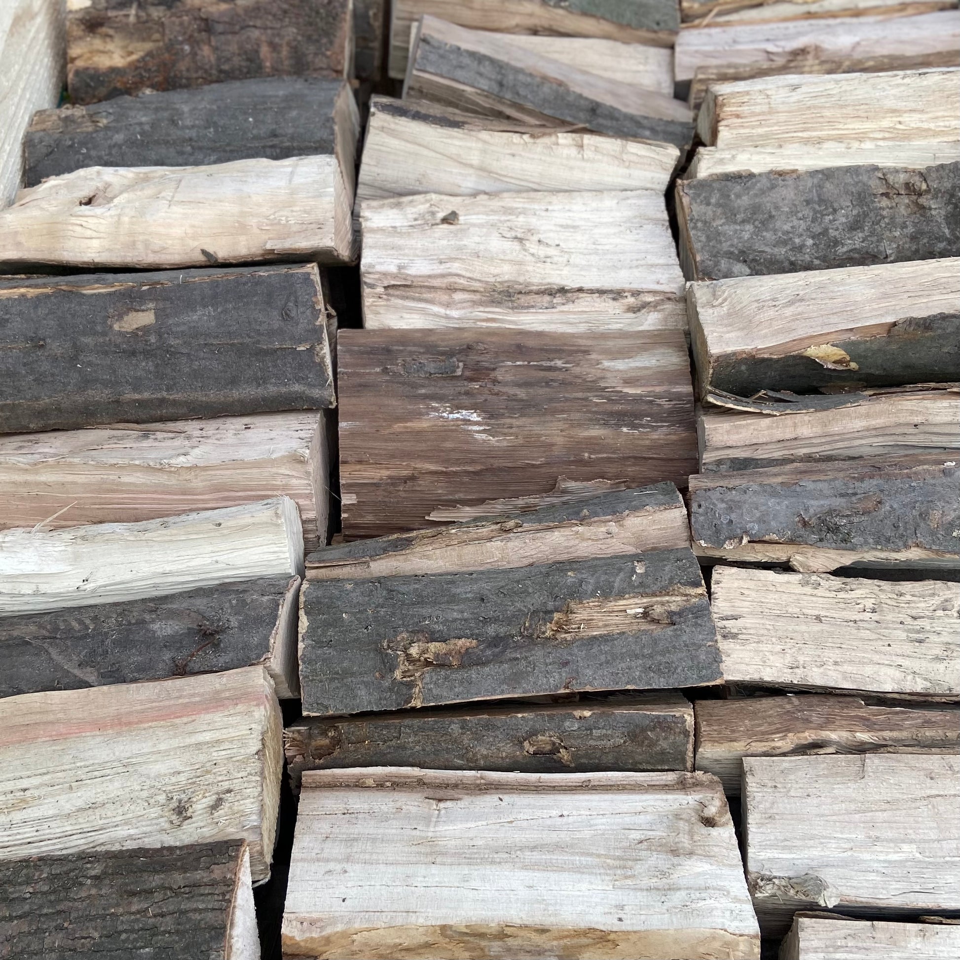 Het hout is onbewerkt en gekloofd uit de stam met een lengte van ongeveer 25 centimeter.