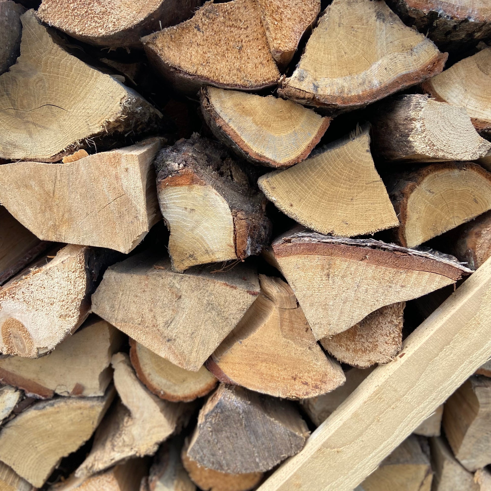 Het hout is onbewerkt en gekloofd uit de stam met een lengte van ongeveer 25 centimeter.