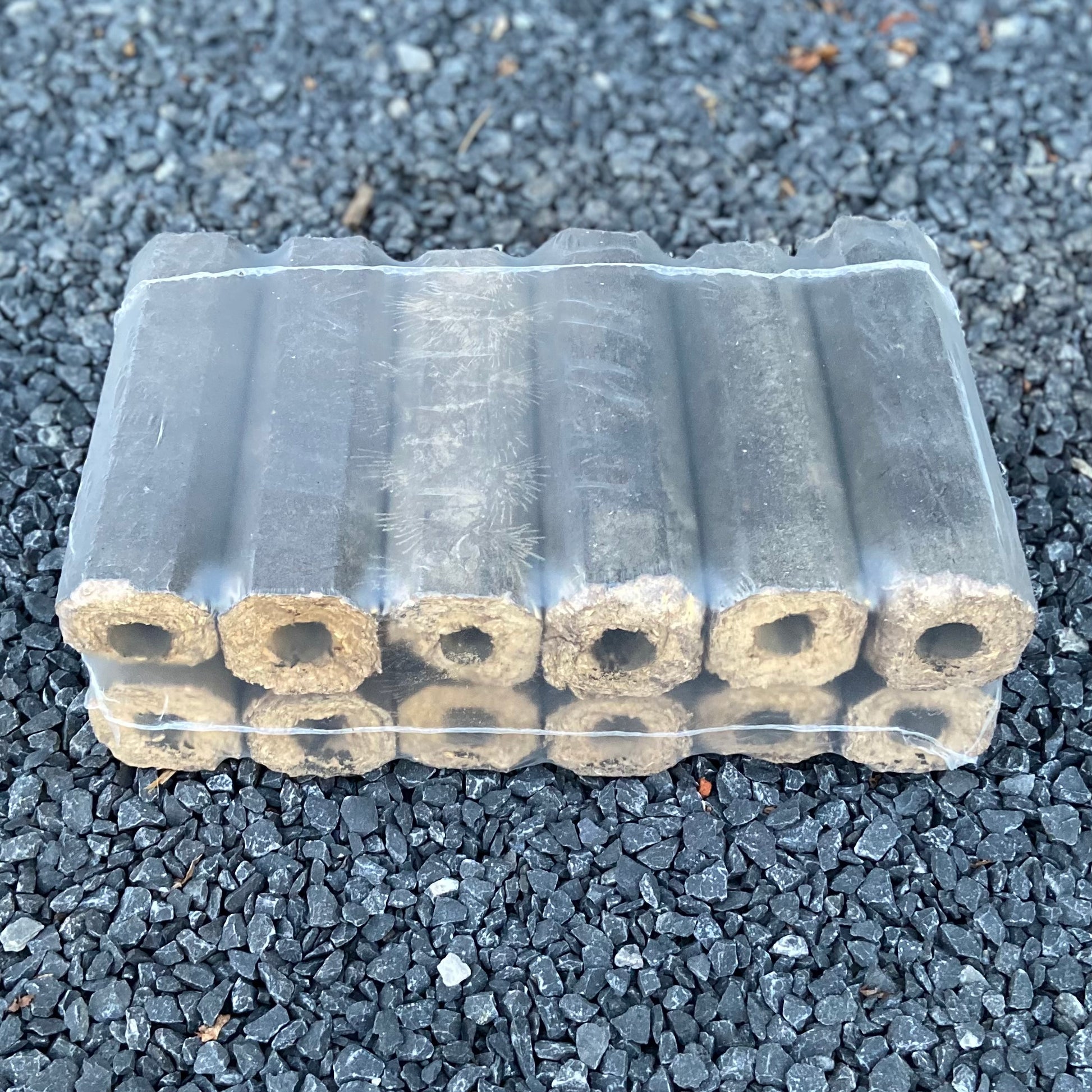 Deze briketten hebben een opvallende 8-hoekige vorm en een gat in het midden. Dit gat zorgt ervoor dat er zuurstof bij kan komen, waardoor de briketten langer branden en efficiënter verbranden.